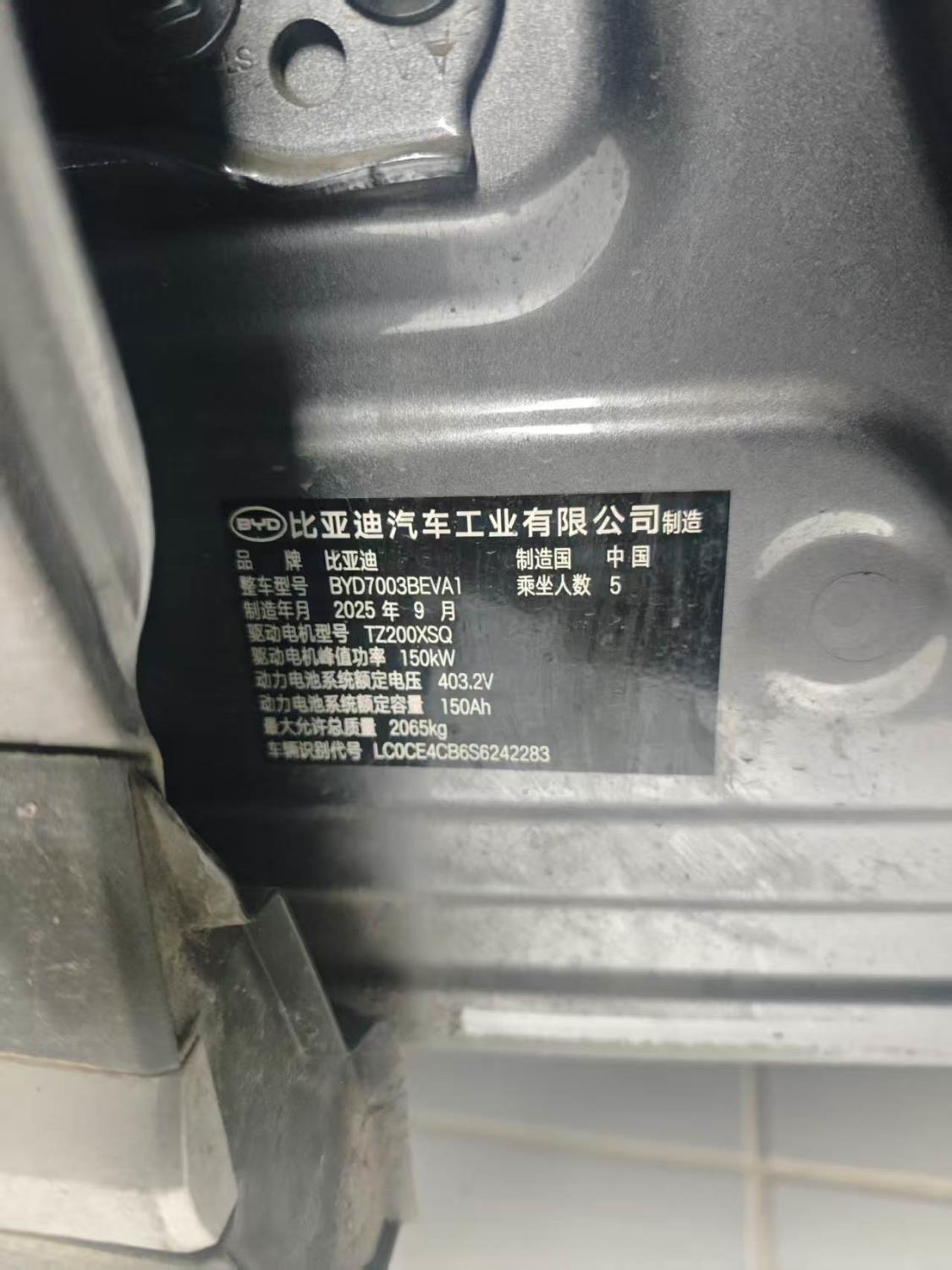 初次登记日期 2025-10-08 车辆名称 比亚迪