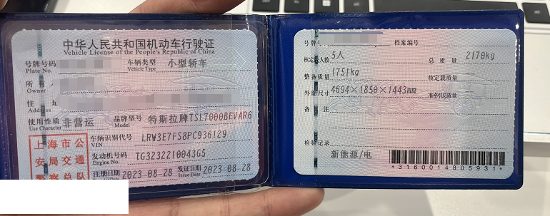 初次登记日期 2023-08-28 车辆名称 特斯拉 Model
