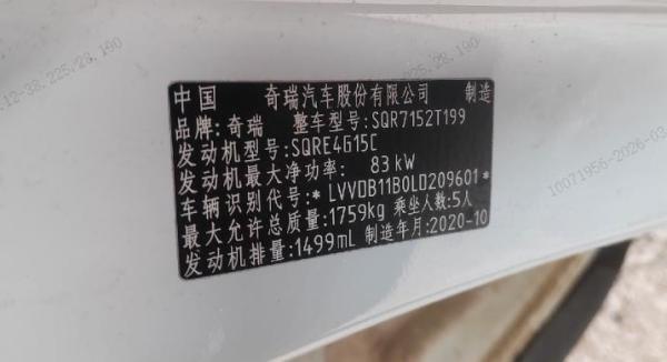 初次登记日期 2020-12-04 车辆名称 奇瑞 瑞虎5x
