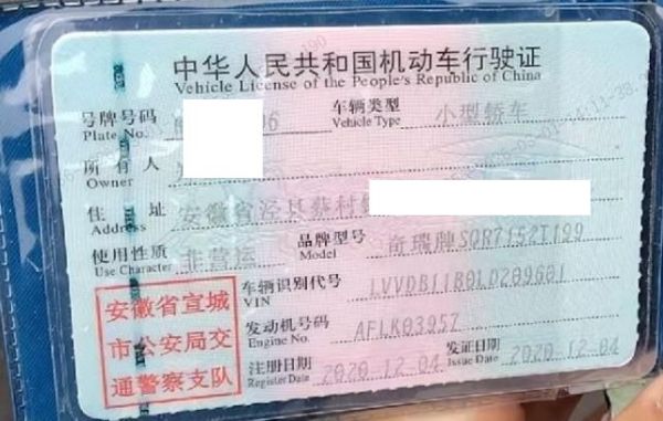 车牌号 皖****** 品牌 奇瑞