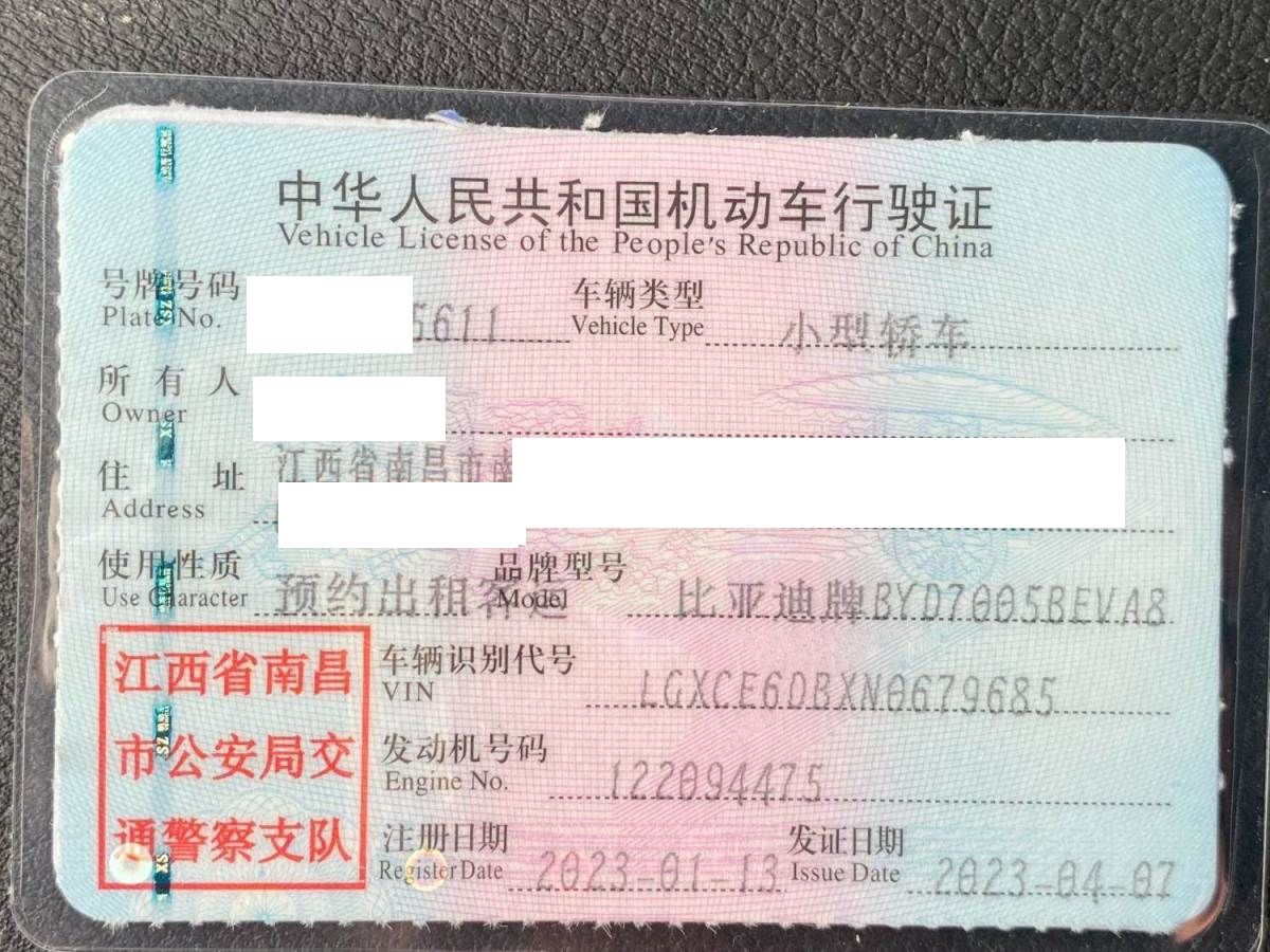 车牌号 赣****** 品牌 比亚迪