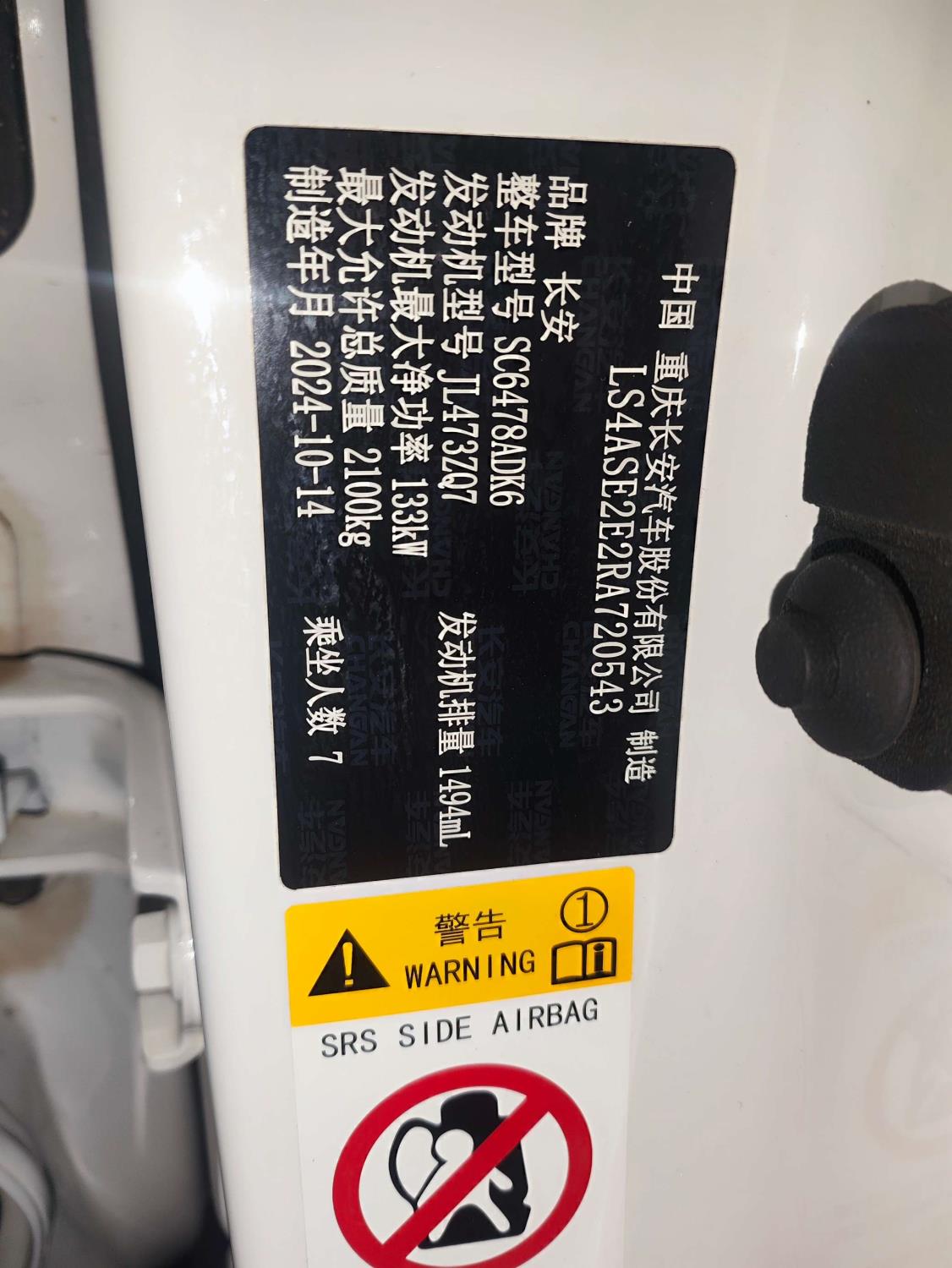 底盘号码 LS4ASE2E2RA720543 变速箱类型 自动