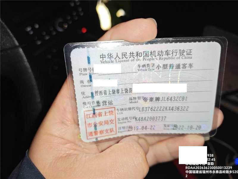 车牌号 赣****** 品牌 吉利