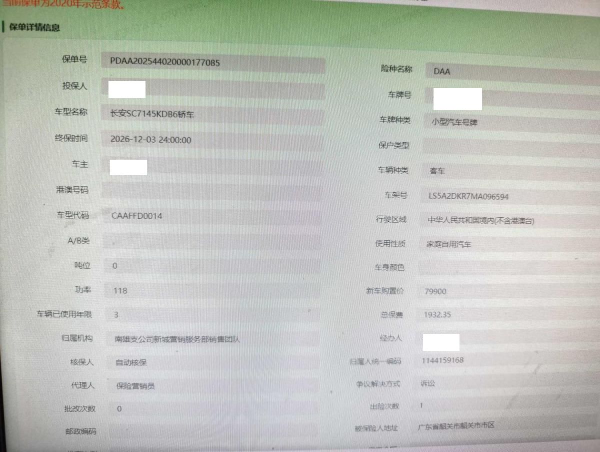 车牌号 粤****** 品牌 长安