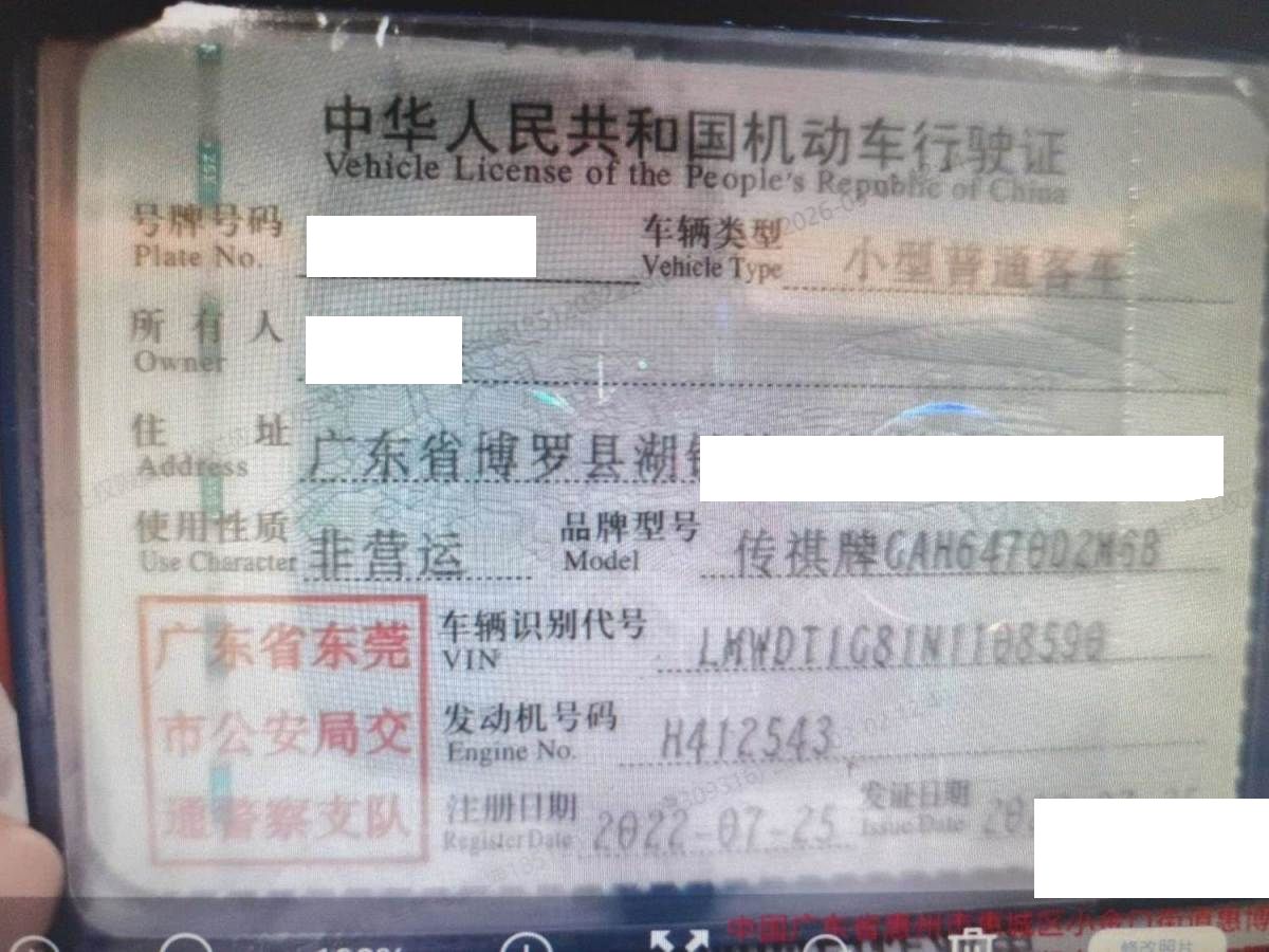车牌号 粤****** 品牌 传祺