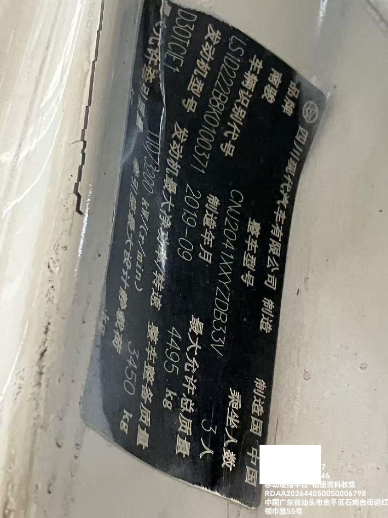 车辆归属地 广东省汕头市 车辆停放仓库 广东省汕头市