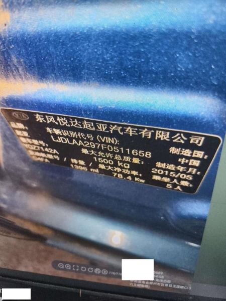 初次登记日期 2015-10-09 车辆名称 起亚K2