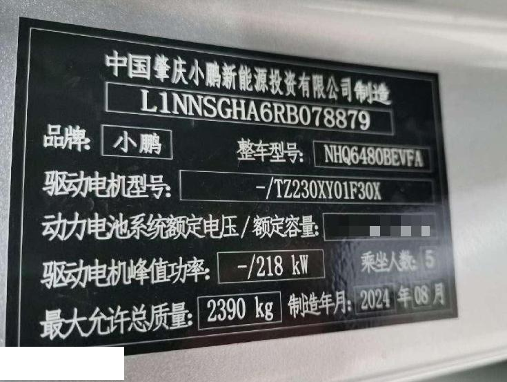初次登记日期 2024-09-16 车辆名称 小鹏牌