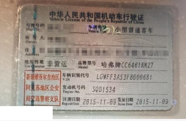 初次登记日期 2015-11-09 车辆名称 哈弗牌