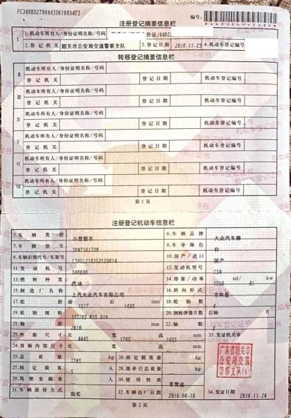 初次登记日期 2016-11-24 车辆名称 大众 朗行