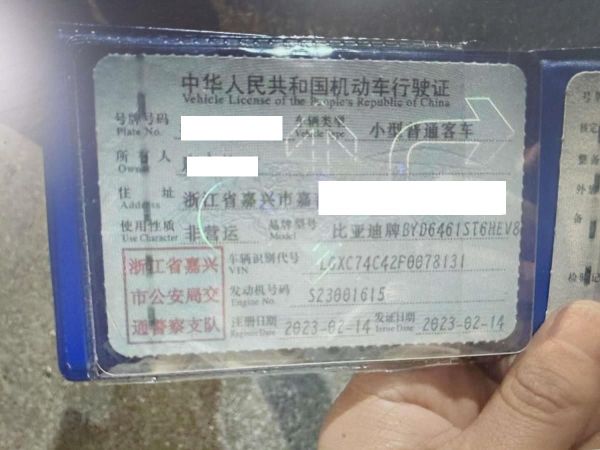 车牌号 浙****** 品牌 比亚迪