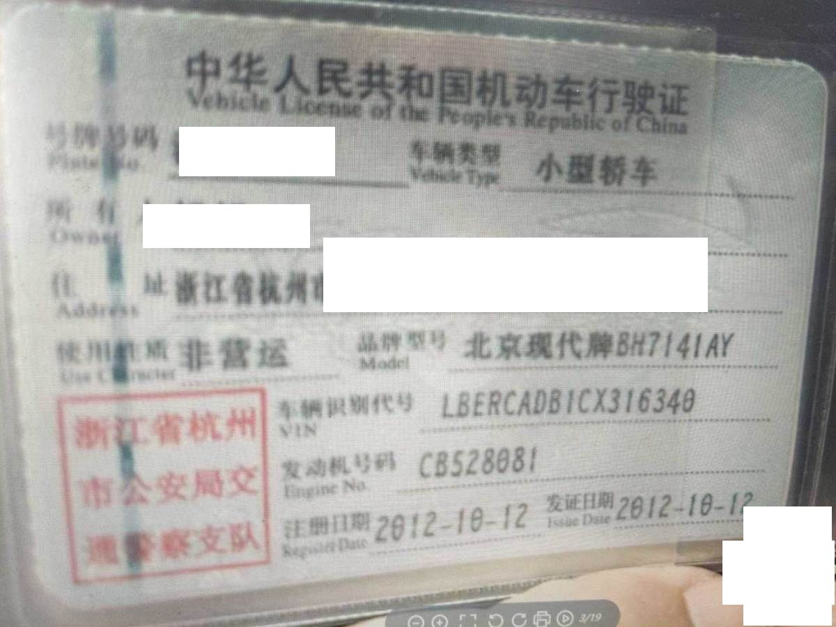 初次登记日期 2012-10-12 车辆名称 现代 瑞纳