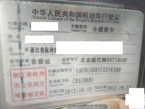 车牌号 浙****** 品牌 现代