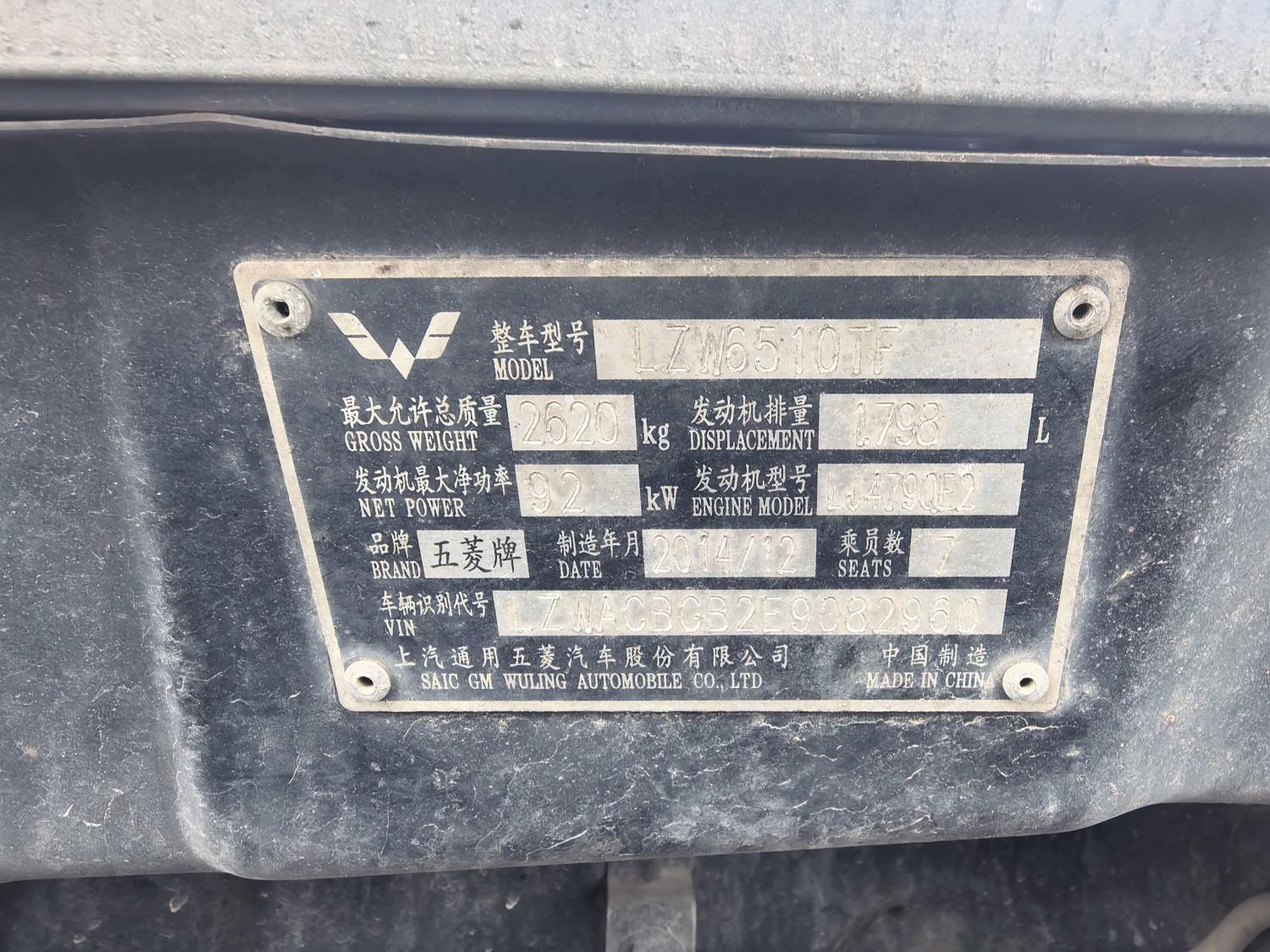 初次登记日期 2015-06-19 车辆名称 五菱汽车 五菱征程经典