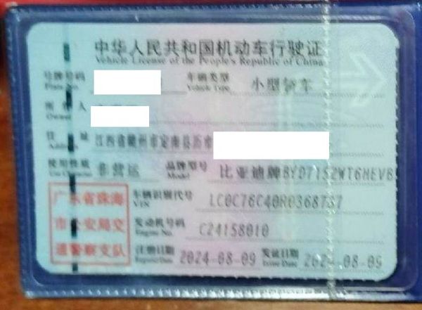初次登记日期 2024-08-09 车辆名称 比亚迪 秦PLUS