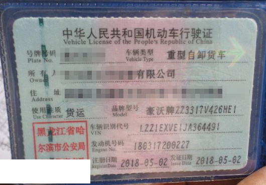 车辆归属地 黑龙江省哈尔滨 车辆停放仓库 黑龙江省哈尔滨