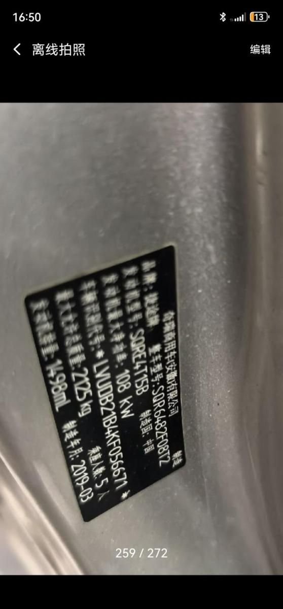 底盘号码 LVUDB21B4KF056671 变速箱类型 手自一体