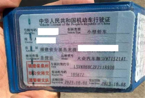 车辆归属地 福建省泉州市 车辆停放仓库 福建省泉州市泉州市