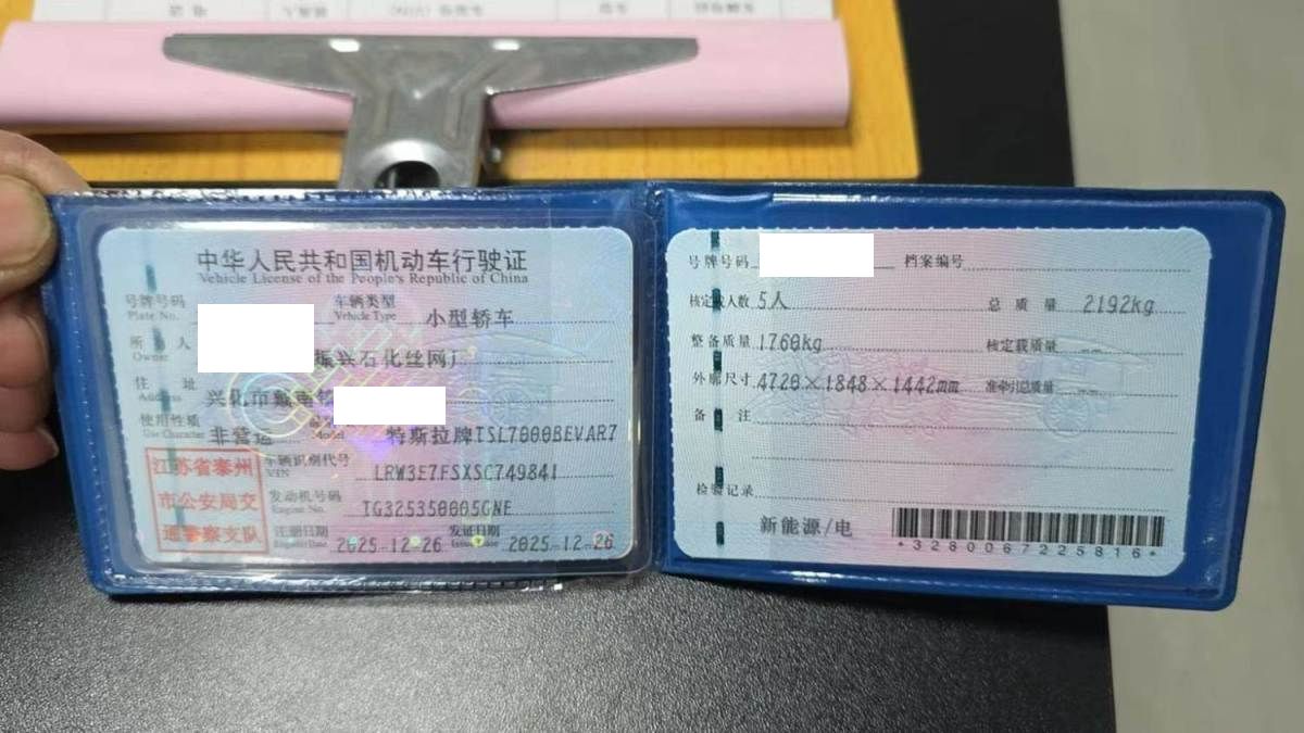 初次登记日期 2025-12-26 车辆名称 特斯拉 Model