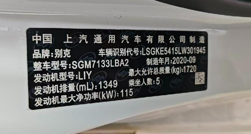 初次登记日期 2020-12-25 车辆名称 别克 英朗