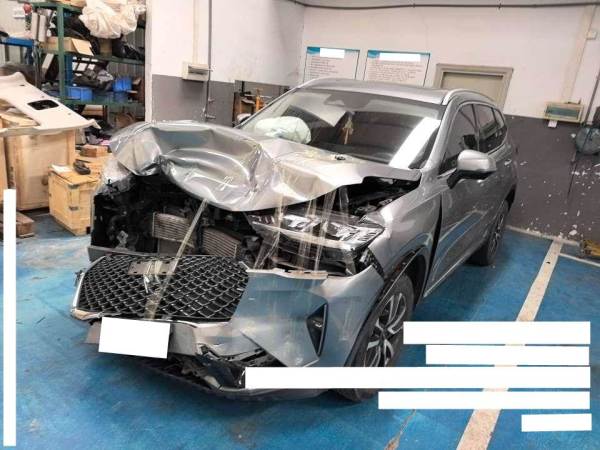标的行驶碰撞三者,标的爆气囊,钢印无损,预估维修费超五成