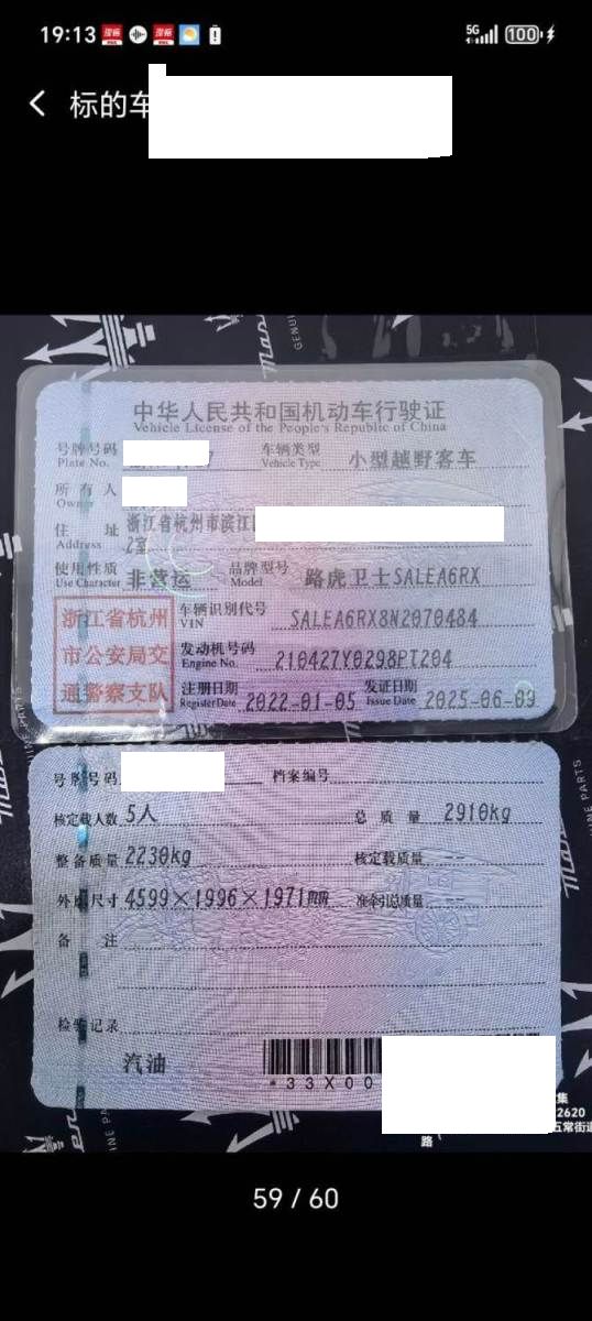 车牌号 浙****** 品牌 路虎