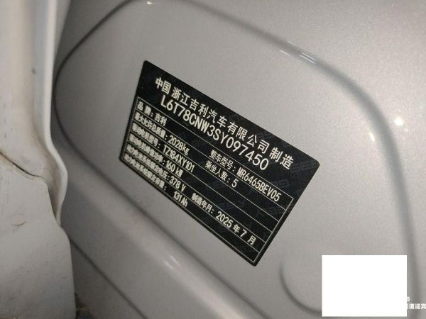 初次登记日期 2025-08-05 车辆名称 吉利银河 银河