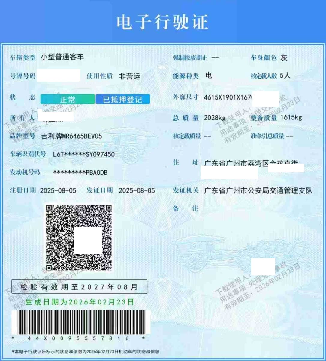 车牌号 粤****** 品牌 吉利