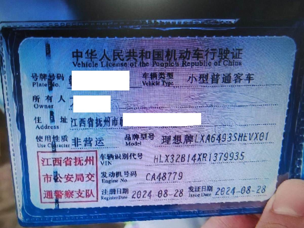 初次登记日期 2024-08-28 车辆名称 理想汽车