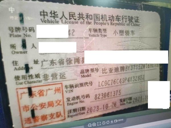 初次登记日期 2023-10-26 车辆名称 比亚迪 秦