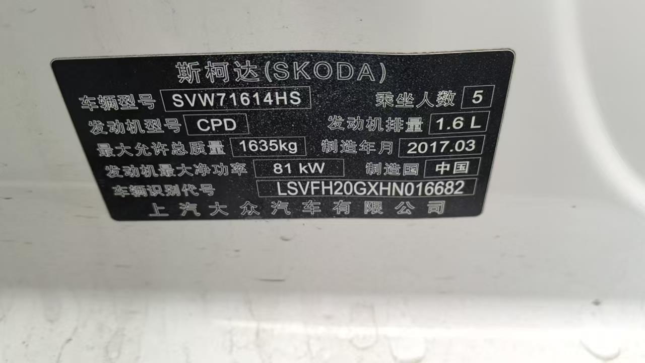 初次登记日期 2017-06-26 车辆名称 斯柯达 昕动