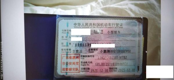 初次登记日期 2025-12-10 车辆名称 小鹏牌
