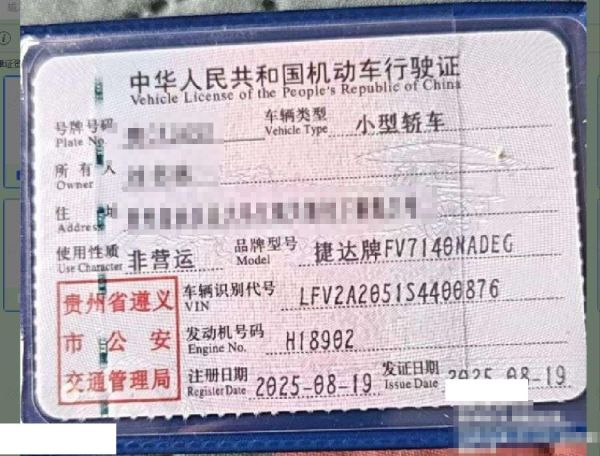 初次登记日期 2025-08-19 车辆名称 捷达VA7
