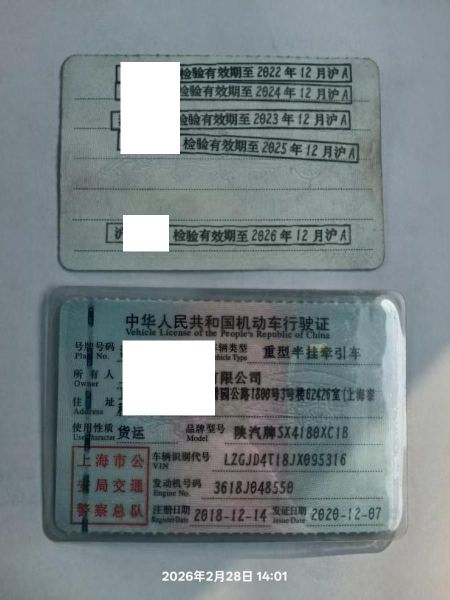 车牌号 沪****** 品牌 陕汽牌
