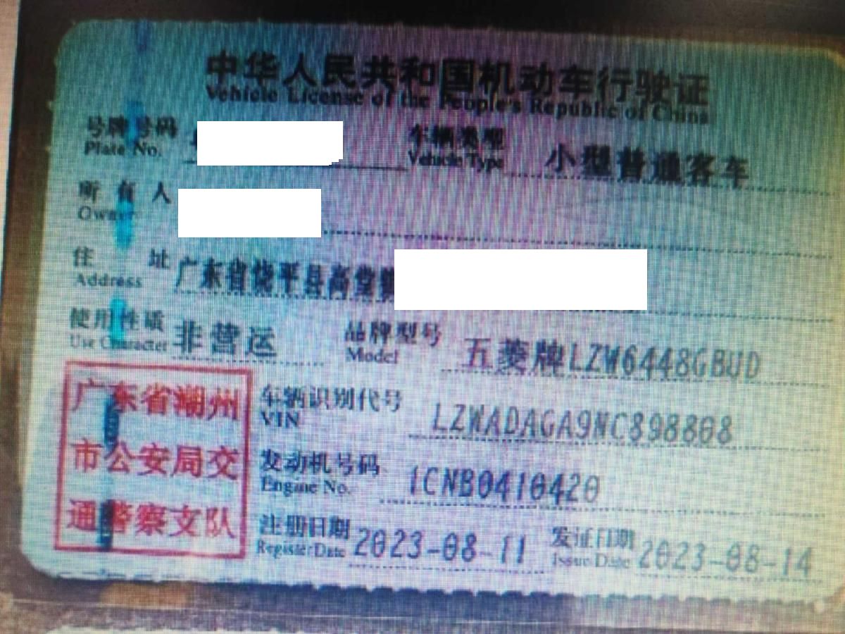 初次登记日期 2023-08-11 车辆名称 五菱汽车 五菱宏光V