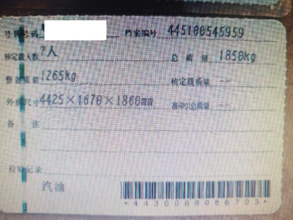 车牌号 粤****** 品牌 五菱