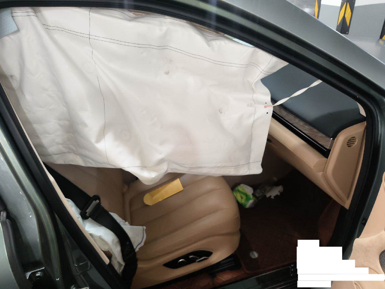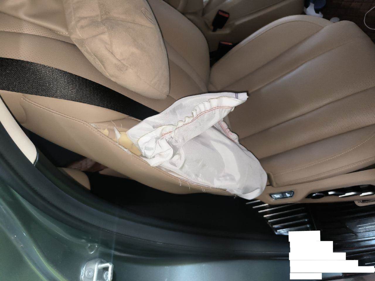 高速左右撞护栏,座椅气囊爆,气帘爆,底盘受损