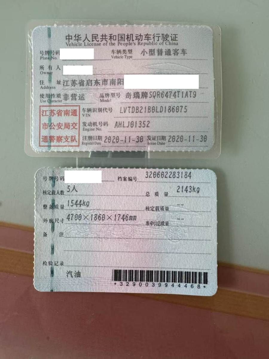 车牌号 苏****** 品牌 奇瑞