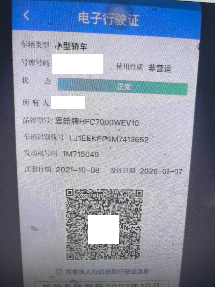 初次登记日期 2021-10-08 车辆名称 思皓 花仙子