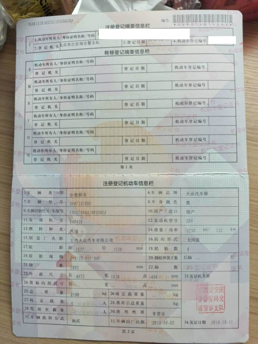 车牌号 皖****** 品牌 大众