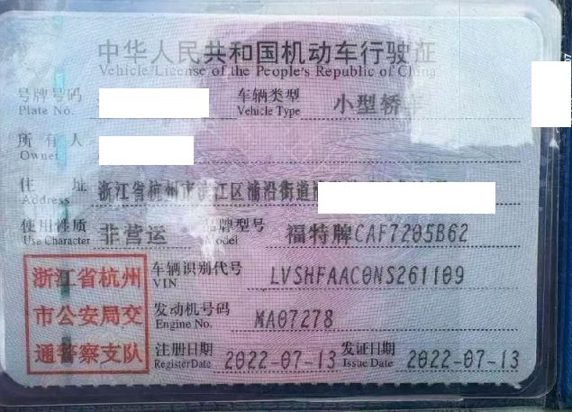 车辆归属地 浙江省杭州 车辆停放仓库 浙江省杭州市杭州市