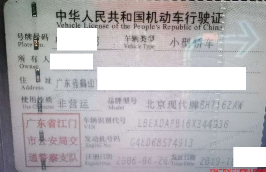 车辆归属地 广东省江门市 车辆停放仓库 广东省江门市江门市