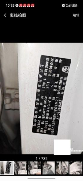 初次登记日期 2017-11-22 车辆名称 宝骏510