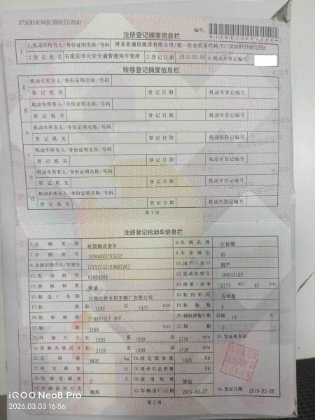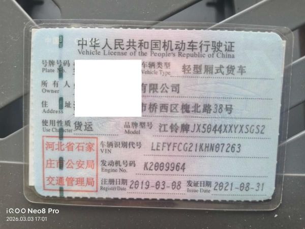 初次登记日期 2019-03-08 车辆名称 江铃 运输车
