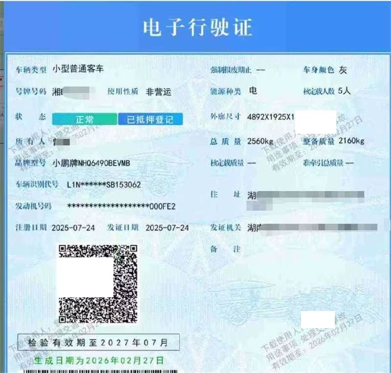 车牌号 湘****** 品牌 小鹏