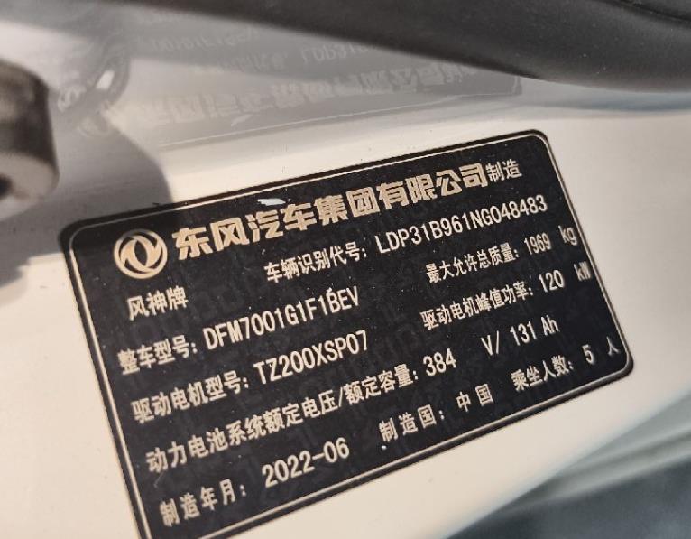 初次登记日期 2022-07-05 车辆名称 东风风神E70