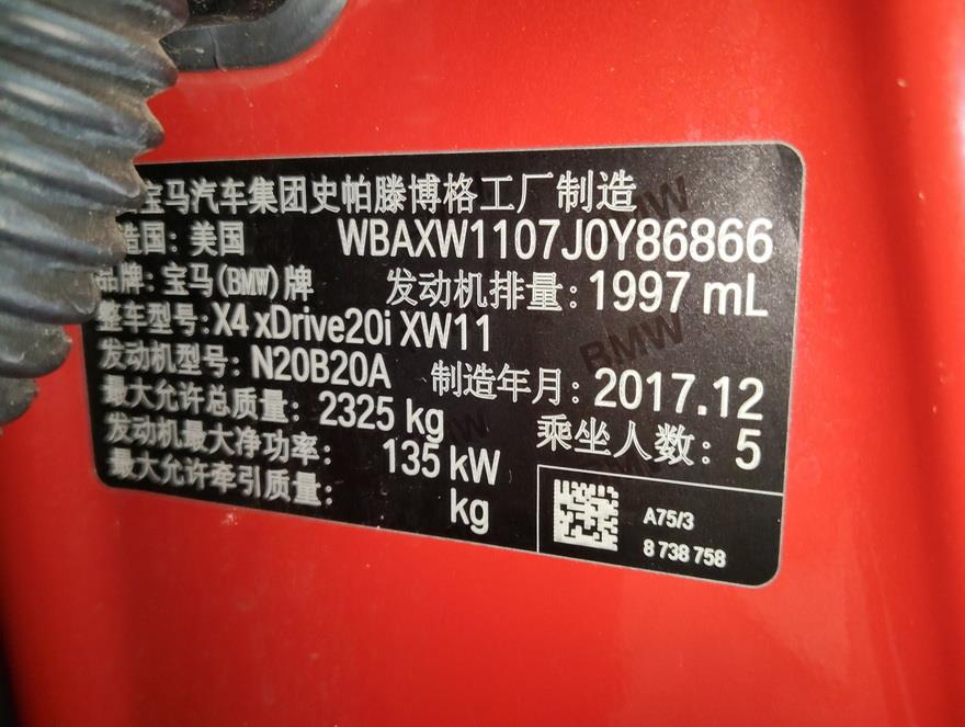 初次登记日期 2018-04-10 车辆名称 宝马X4