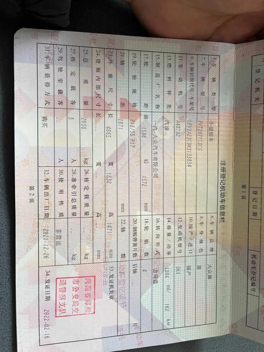 初次登记日期 2022-02-16 车辆名称 大众 迈腾