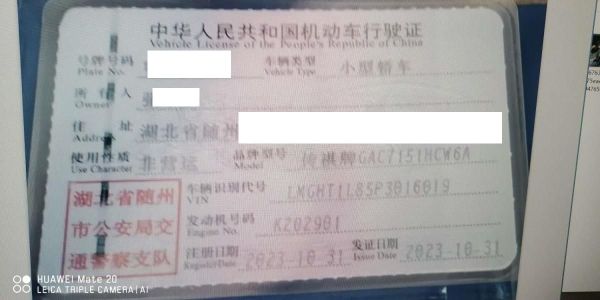 初次登记日期 2023-10-31 车辆名称 广汽传祺