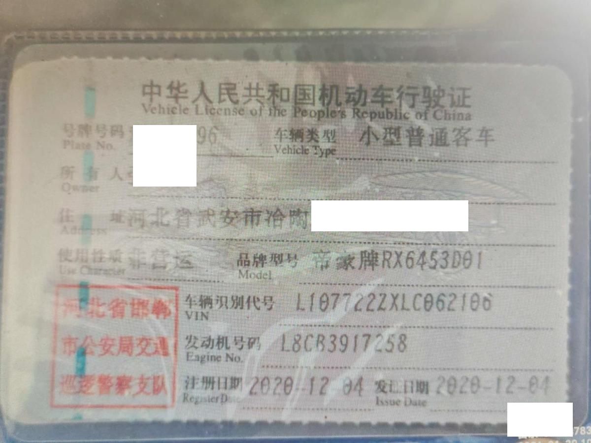 车牌号 冀****** 品牌 吉利